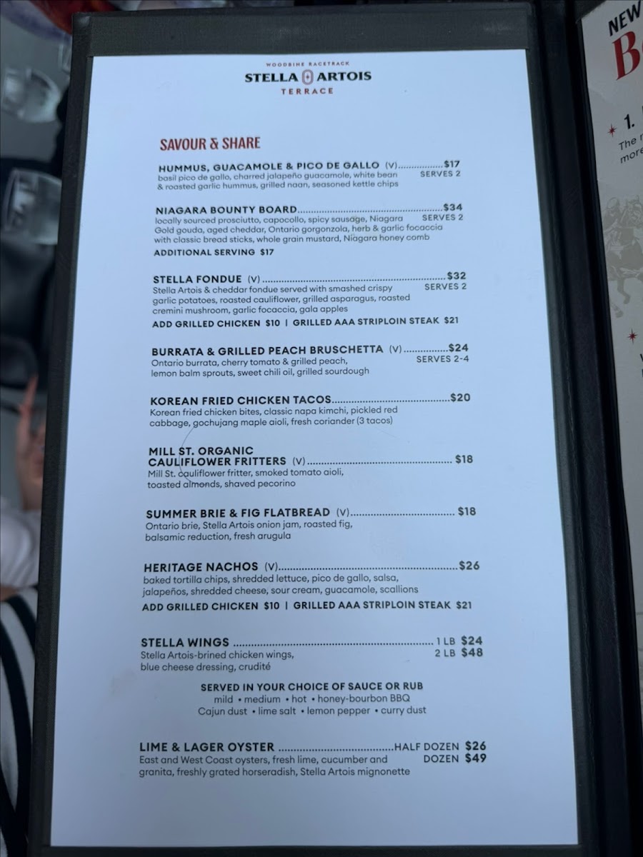 Each item on the menu at Stella Artois Terrace At Woodbine Racetrack is carefully crafted to provide both comfort and excitement, ensuring a memorable dining experience.